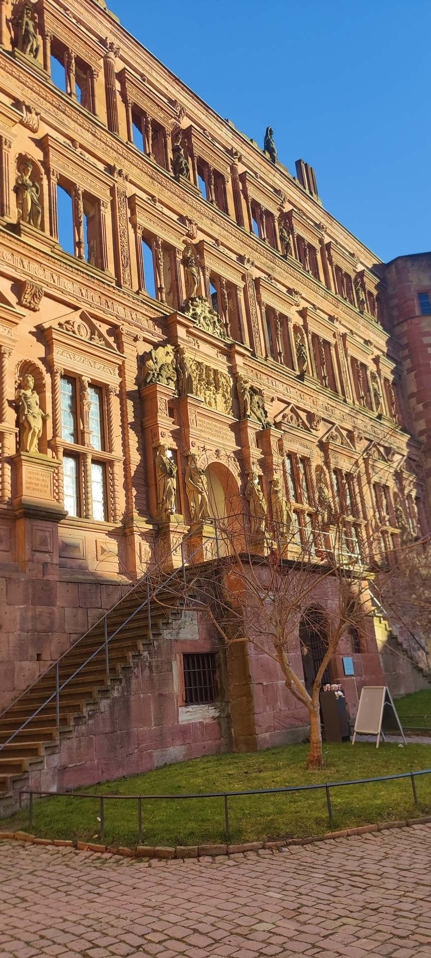 מן העיר העתיקה אפשר לעלות גם אל הטירה של היידלברג. הדרך הקלה והמהירה יותר היא כמובן במעין רכבת תחתית בשיפוע, המזכירה את הכרמלית בחיפה. בחורבות הטירה, שנבנתה בתקופת הרנסאנס, ניתן להבחין בארבע מאות שנות בנייה ובחלקים שנותרו כחורבות והלהיבו במשך מאות שנים דורות של רומנטיקנים. בטירה תוכלו לבקר בחבית היין הגדולה בעולם ובמוזיאון הרוקחות. שקט ושלווה יחסית שוררים שוב בגני הטירה הנרחבים, המזמינים לטיול רגוע ולהתבוננות. המראות הנשקפים מהגנים המופלאים הסובבים את הטירה אל עבר העיר העתיקה אינם נופלים ביופיים מן הנוף הנשקף משביל הפילוסופים.