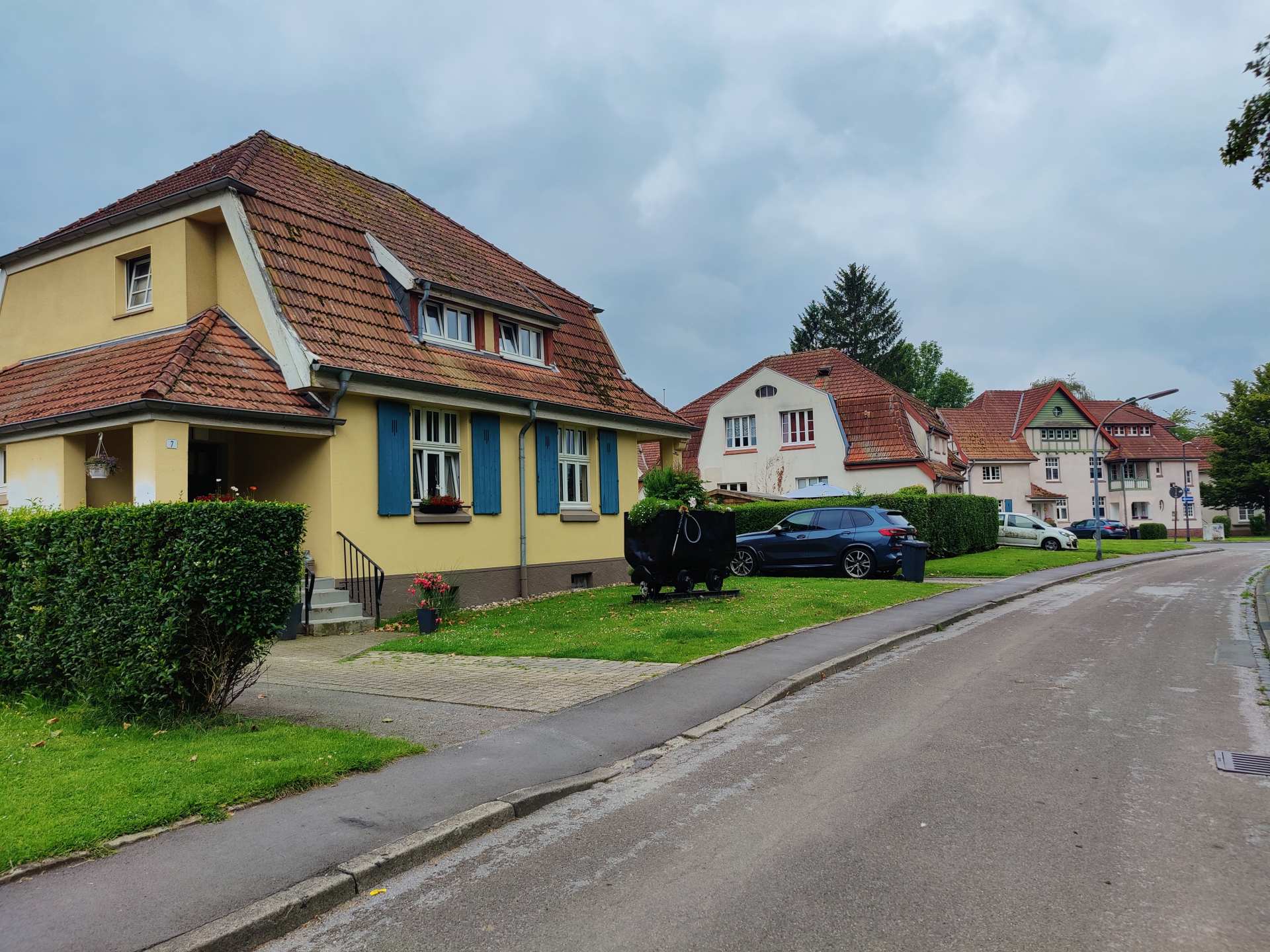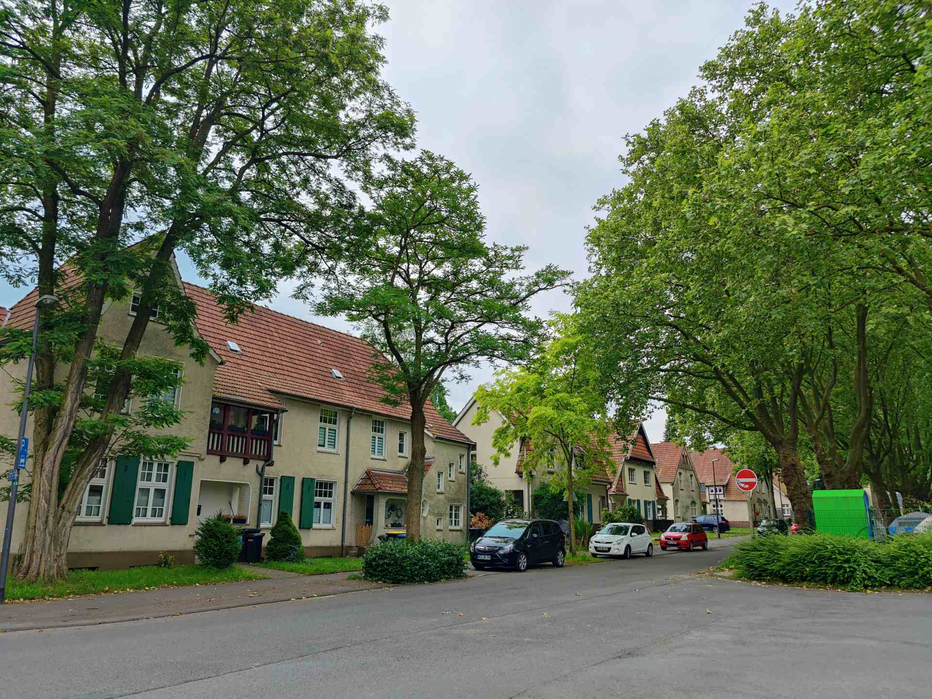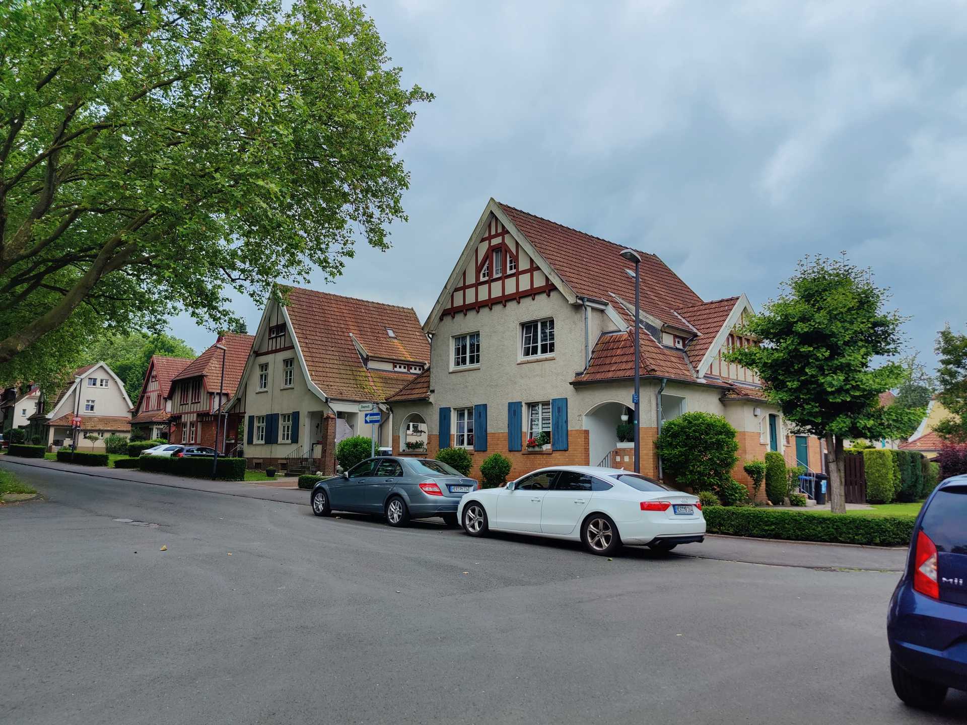 שכונת גנים מרשימה שנבנתה לעובדי מכרה "Hannover", עם בתים מסודרים בסגנון אחיד וגינות פרטיות.